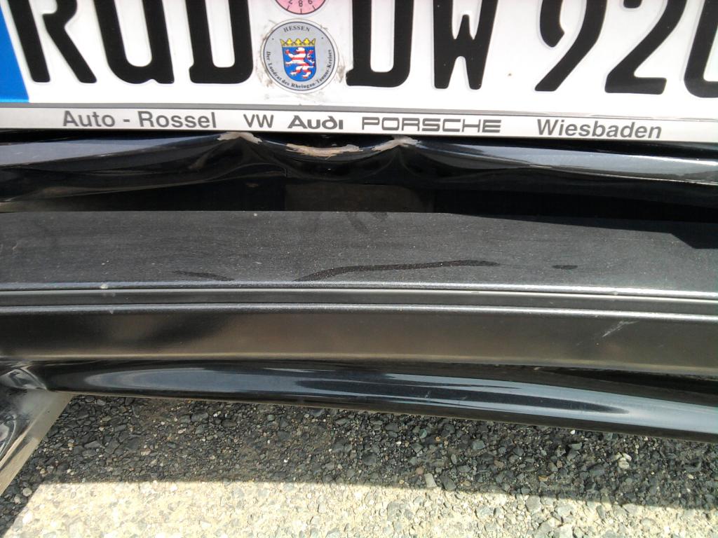 das auto hat einen heckschaden, da ist so eine olle draufgefahrenn.