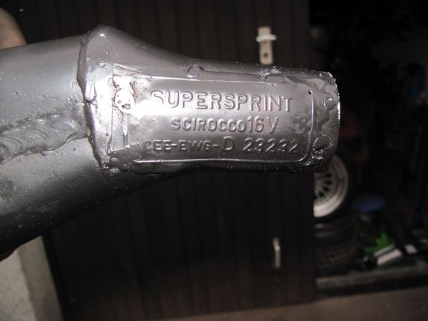 VHB 15,- 16V PL (evtl. auch kr?) supersprint fächerkrümmer 4-2-1 und supersprint vorschalldämpfer, vorbesitzer des autos hatt wohl mal beides runter und dann war der obrige kat dazwischen, haben die teile getrennt, der fächer wurde hinten saubergemacht und mit neuem auspufflack wieder geschützt...kopie der papiere wo ich heralten hab beim kauf des autos wird mitgegeben...