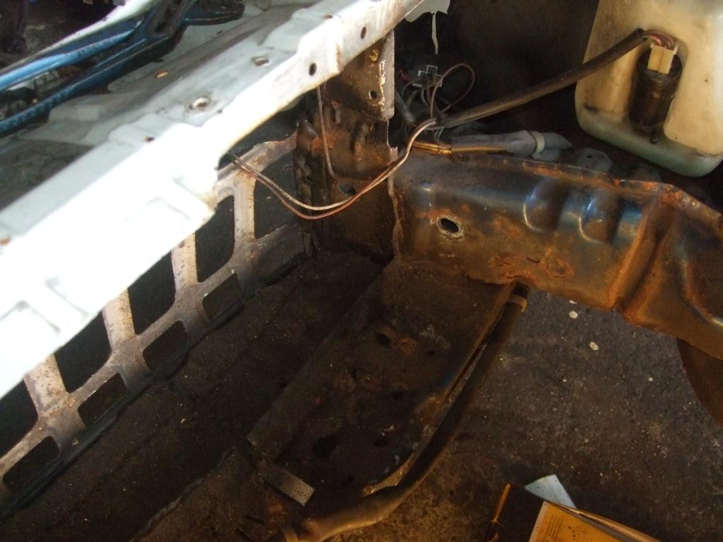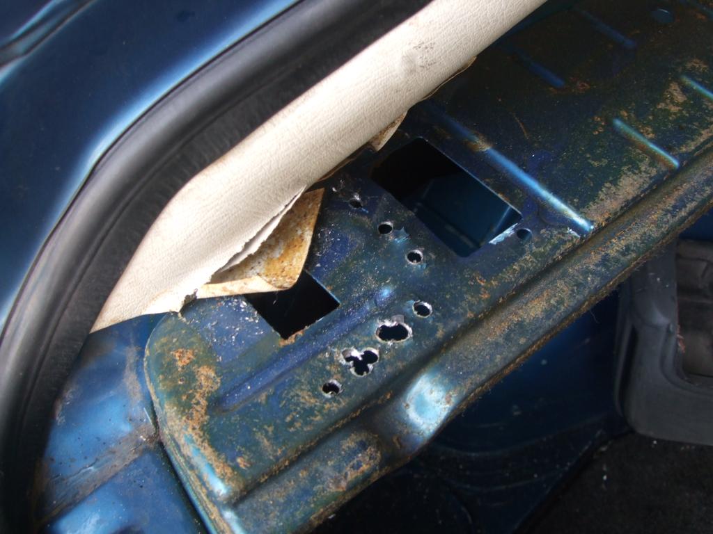 Zur Info:Das A.-Brett, Kabel und Bremskraftverstärker kommt noch raus. Wie zu sehen ist habe ich auch die hinteren Befestigungen der 3 Punkt Gurte entfernt.