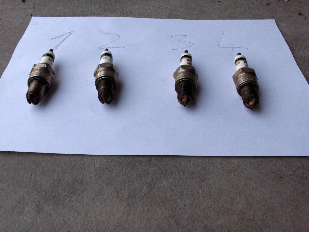 Dann fange ich mal an; Zylinder 1 (ich nehme an, dass ist der am Nockenwellenrad) ist immer feucht inklusive der Zündkerze, was zur Folge hat, dass er beim Start nicht direkt mit anläuft. Die übrigen drei Zündkerzen weisen rote Ablagerungen auf (rot? von schwarzen liest man überall). Also läuft das komplettpaket schon mal viel zu fett, behaupte ich mal. Ölverlust habe ich so gut wie gar nicht, außer etwas an der Ventilhaube daher schließe ich mal aus, dass er sich Öl reinzieht.