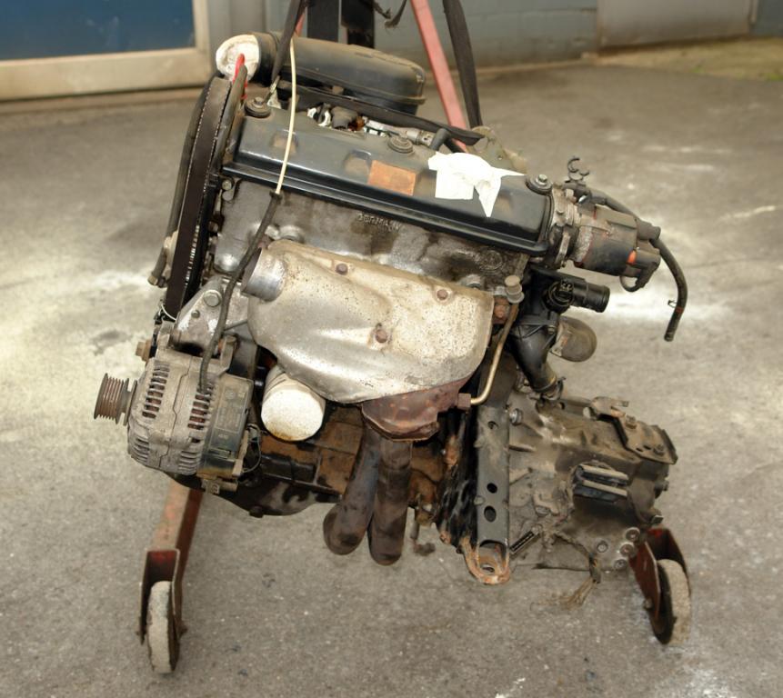 (1) Motor: 1,4l - 44 KW - 60 PS - Motorkennbuchstabe ABD - mit allen Anbauteilen (Getriebe, Anlasser, Lichtmaschine, Krümmer, Hosenrohr etc.). Laufleistung ca. 164.000 km. Lief vor dem Ausbau einwandfrei. Motor ist trocken, kein Ölverlust.