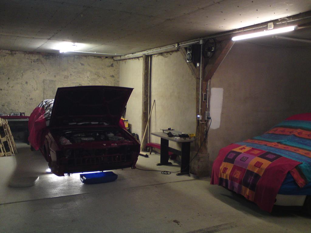 Da ich jetzt endlich meine neue Garage soweit auf Vorderman gebracht habe,dass man halbwegs ordentlich schrauben kann,hab ich mal angefangen meinen Scirocco zu zerlegen um die kaputte Front in den Griff zu bekommen.