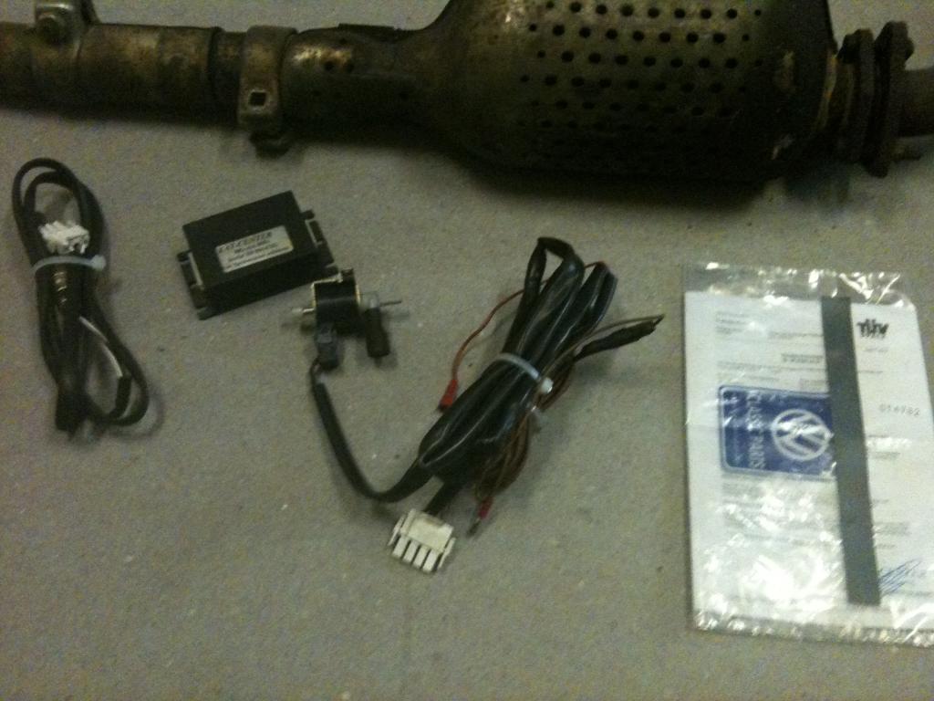 Steuergerät, Lambdasonde (3-polig), Luftregelventil, Kabelbaum, Einbauanleitung, Tüvgutachten, Golf 2 Krümmer mit Lambdasondenanschluss, Golf 2 Hosenrohr und Golf 2 U-Kat (der Tüvprüfer war erstaunt, wie gut die Abgaswerte mit diesem Kat und dem Kit waren!!!)