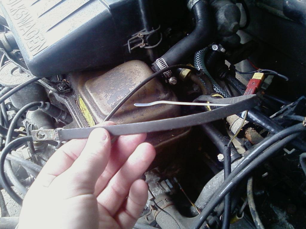 Haben uns nach dem kruzen Testlauf ebend nochmal den Motorraum angeguckt. Dabei haben wir dann noch nen Kabel gefunden, was nicht angeschlossen war. Bild ist im Anhang. naja.. mal sehen wie's weiter geht.. Kurzzeitkennzeichen is ja noch bis zum 31. gültig :P