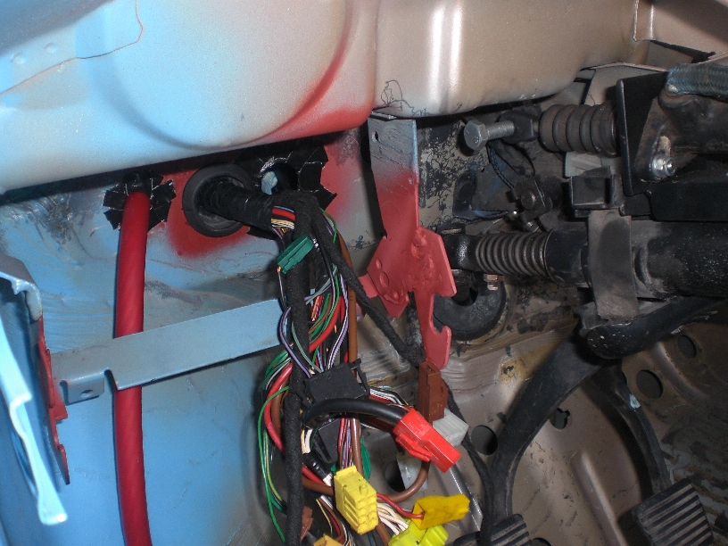 Achso, der Halter hat bei mir auf Anhieb perfekt gepasst. Er ist mit den 2 Schrauben die die Lenksäule halten verschraubt. Wenn man am Halter hier Langlöcher einfräsen würde könnte man den auch noch nachträglich ausrichten, was den Druckpunkt der Kupplung angeht.
