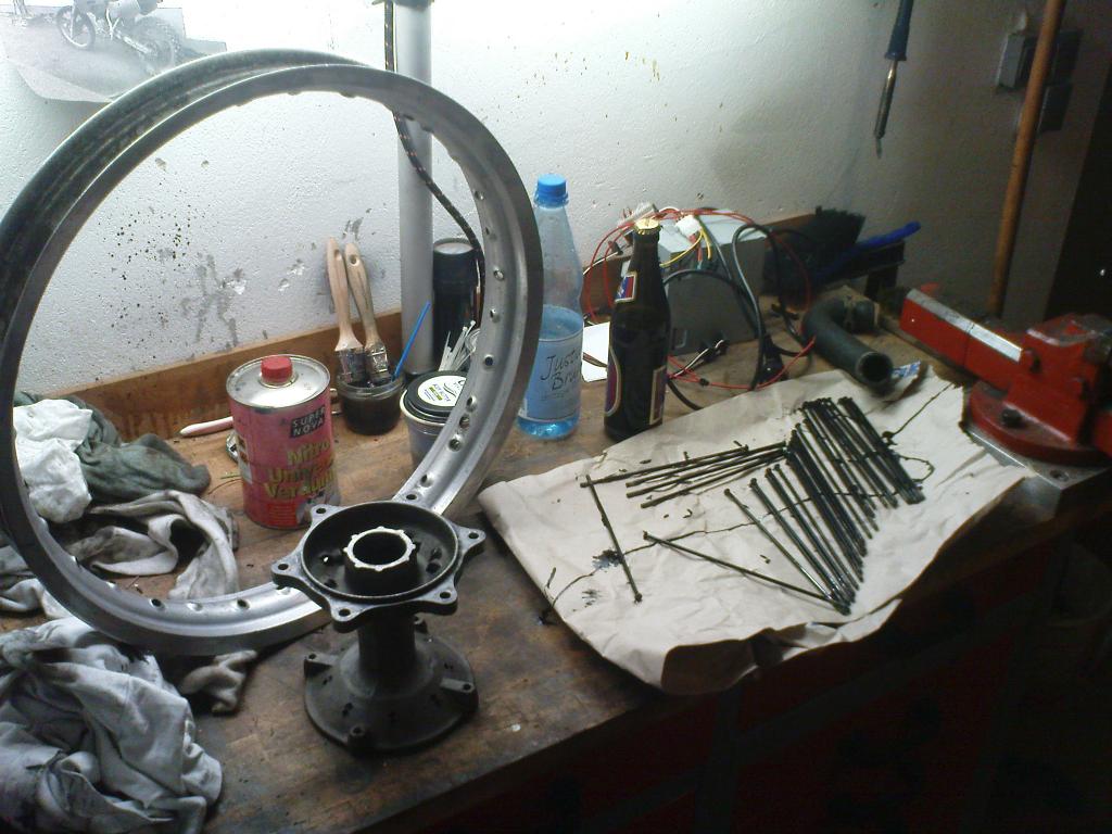 Also alle Speichen raus, Lager raus, alles sauber gemacht und schonmal Speichen lackiert!