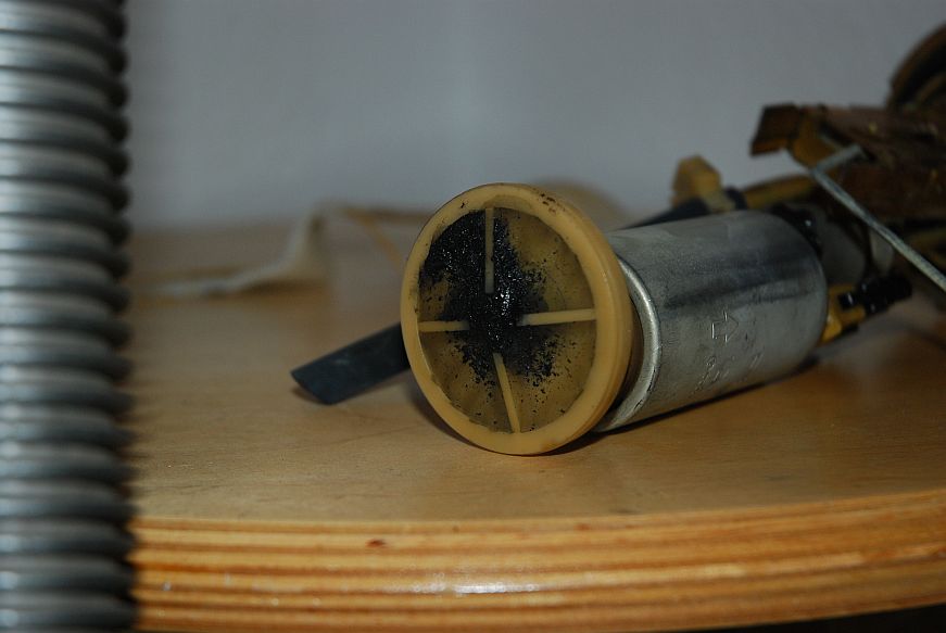 Beim Begutachten der Vorförderpumpe ist mir allerdings anders geworden. Ich hatte letztes Jahr im Sommer prophylaktisch mal den Benzinfilter gewechselt und hinten in den Tank geschaut, alles bestens, silberner Boden, keinerlei Verunreinigung.