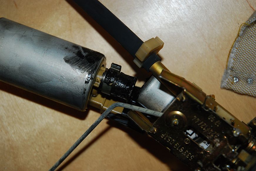 Dieser Gummischlauch löst sich auf, ob durch Hitze oder Benzin kann ich nicht sagen. Ein Stück weiter oben ist ja nochmal so ein silberfarbenes rundes Teil, aus dem -vermutlich- ein Schlauch von oben zur Pumpe geht. Da musste ich feststellen, dass das komplette Schlauchteil offen ist, bzw. weg. Als ich dann die Pumpe umdrehte, erschrak ich ordentlich, doch sieht selbst.