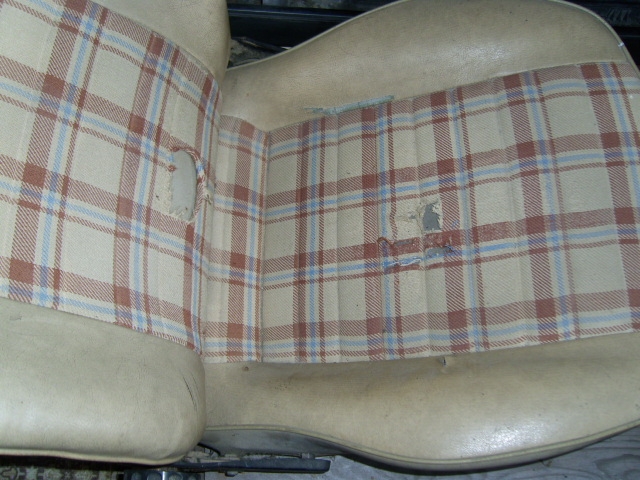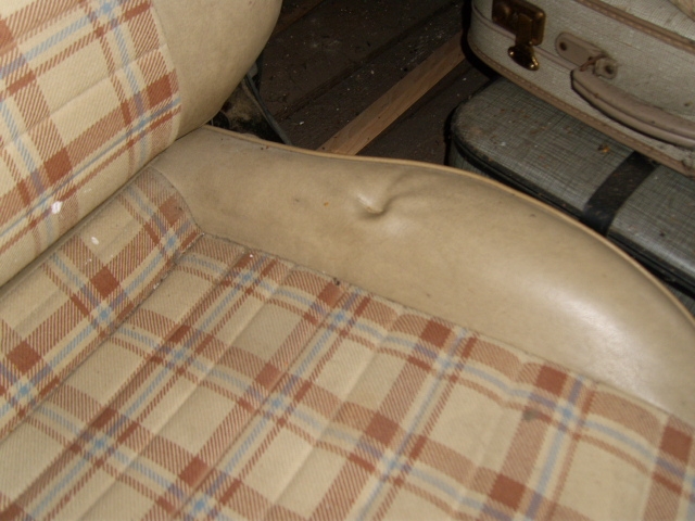 Hallo, biete hier ein Paar 1er Pilotsitze in stark restaurierungsbedürftigem Zustand an. D. h. sie müßen mindestens neu bezogen werden. Original waren sie in beigem Kunstleder mit Beige/blauem Schottenkaro. Sind li/re Vordersitz und Rückbank 2 Lehnen und 1 Sitzfläche. Preislich hab ich mir VB 150 Euro für alles vorgestellt.