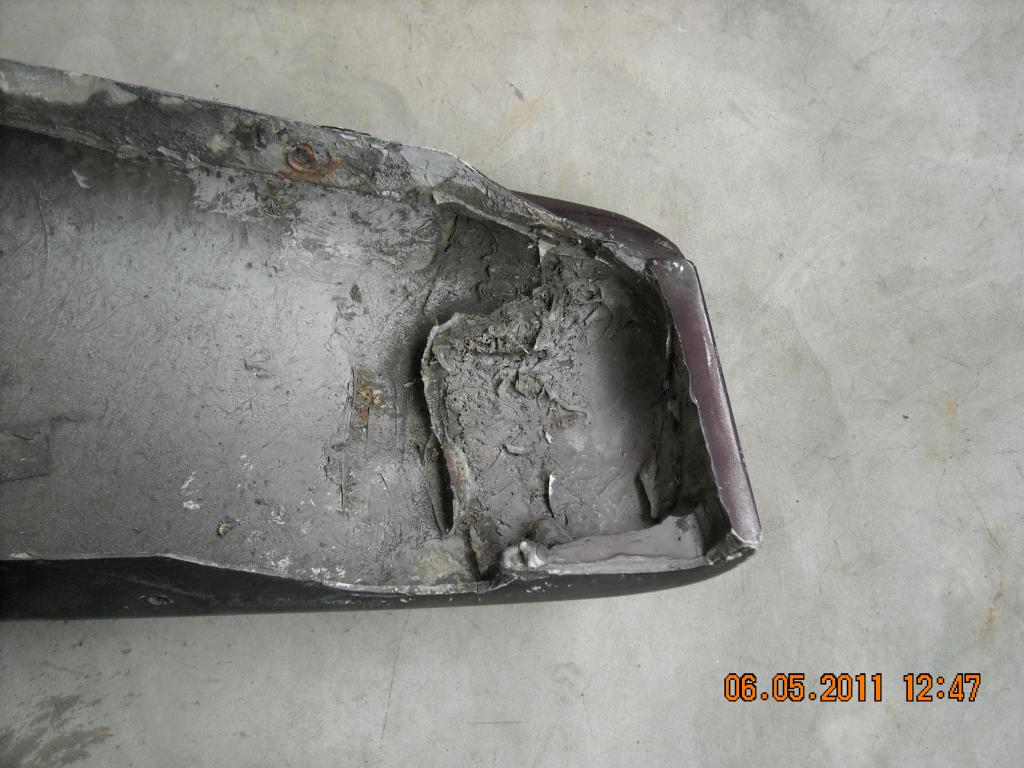 Der Vorbesitzer hatte mal versucht den linken Kotflügel zu spachteln, ist ihm aber leider nicht gut gelungen. Meiner Meinung nach kann man die aber noch retten.