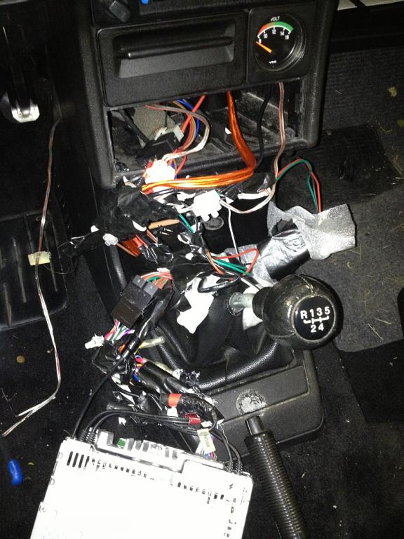 Heute wurde endlich mal was getan. Sitze raus, Lampen raus, Radio raus.... und das war wirklich schockierend. Wusste gar nicht wie viel Kabel in den DIN Schacht passen und wie viel Klebeband erst