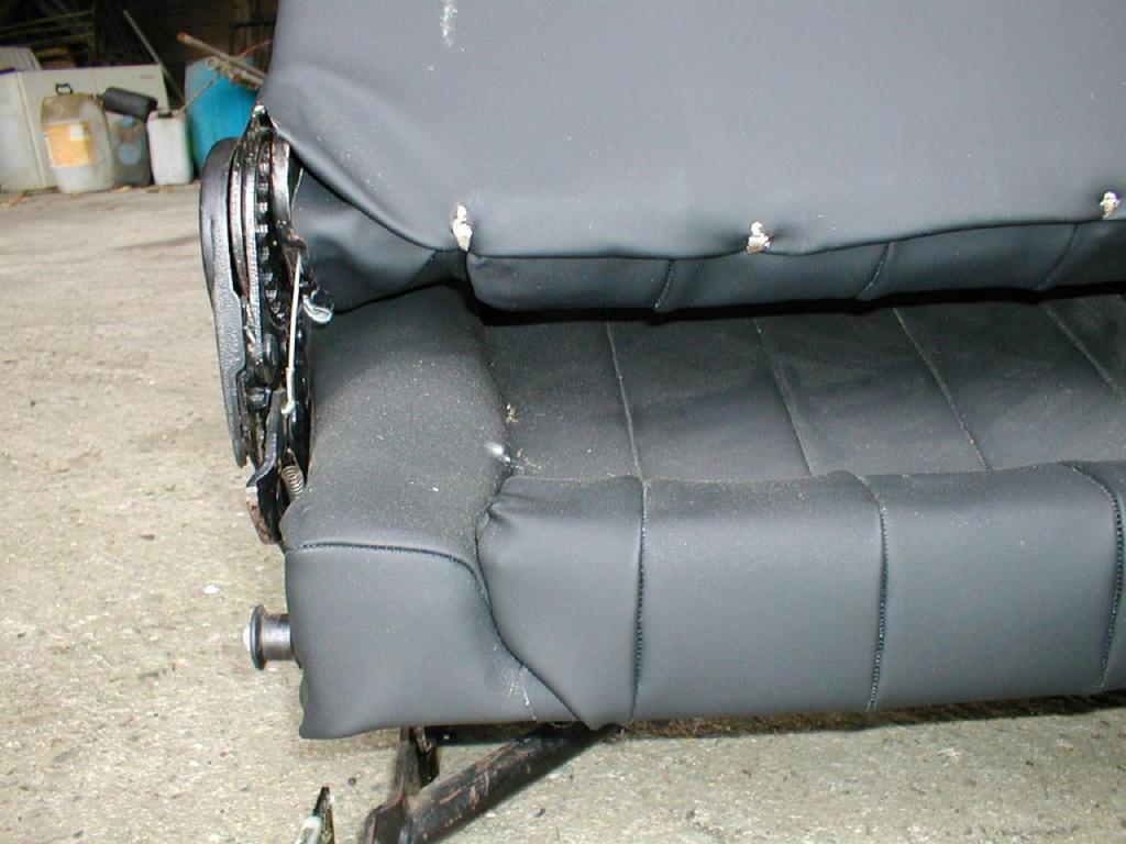 Die Bezüge des Sitz Untergestells sind an den Unterkanten mit Klammern am Sitzgestell befestigt.