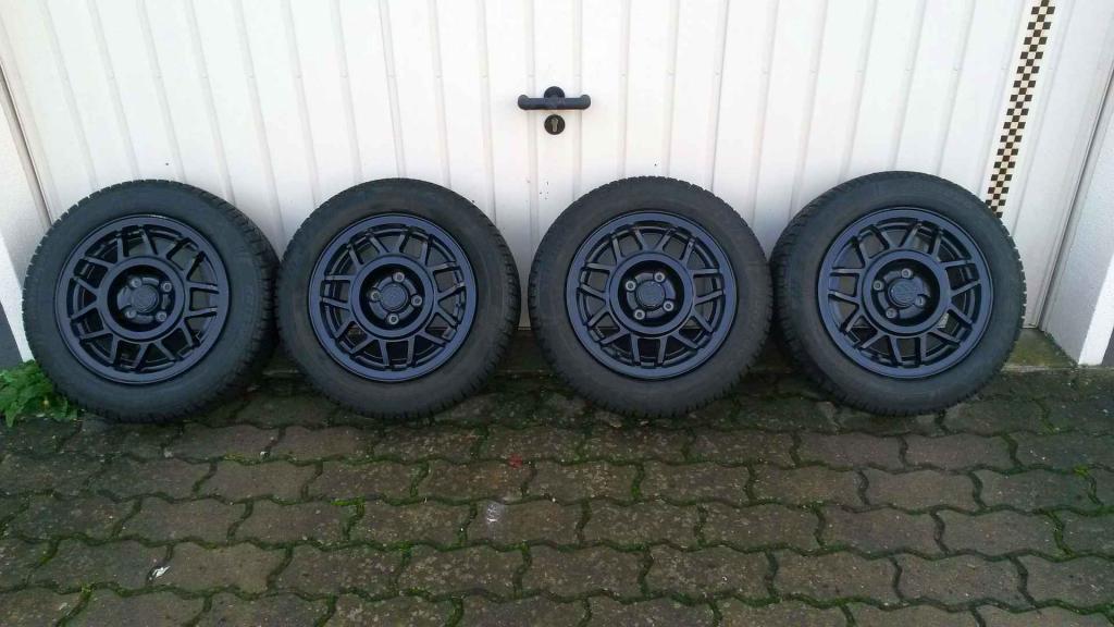 da ich mich nun entschieden habe meinen Scirocco nicht mehr im Winter zu fahren, verkaufe ich 4 schöne, klassische :sabber: VW-Alufelgen mit fast neuen Winterreifen. Die Felgen haben die Dimension 6Jx14 H2 ET38 mit einem Lochkreis von 4x100 passend für Scirocco und Golf. Die Felgen wurden vor 2 Jahren in schwarz lackiert. Hier und da hab ich dann doch mal den Bordstein erwischt, ich hab versucht das auf den Bilder zu zeigen. Die Winterreifen Fulda Montero 3 Kristall in der Größe 185/60 R14 82T sind gerade mal einen Winter gefahren worden, ca. 5000km, DOT 2512, Profil 7mm.