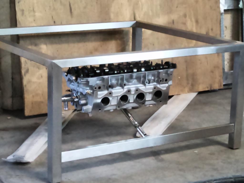 Das Gestell musste natürlich auch noch gebaut werden,in V2a verstehtsich ,und alle Ecken auf 45 Grad verschliffen.Der Kopf sollt in der Mitte des Tisches sein.Also gab es etwas Anpassarbeiten.