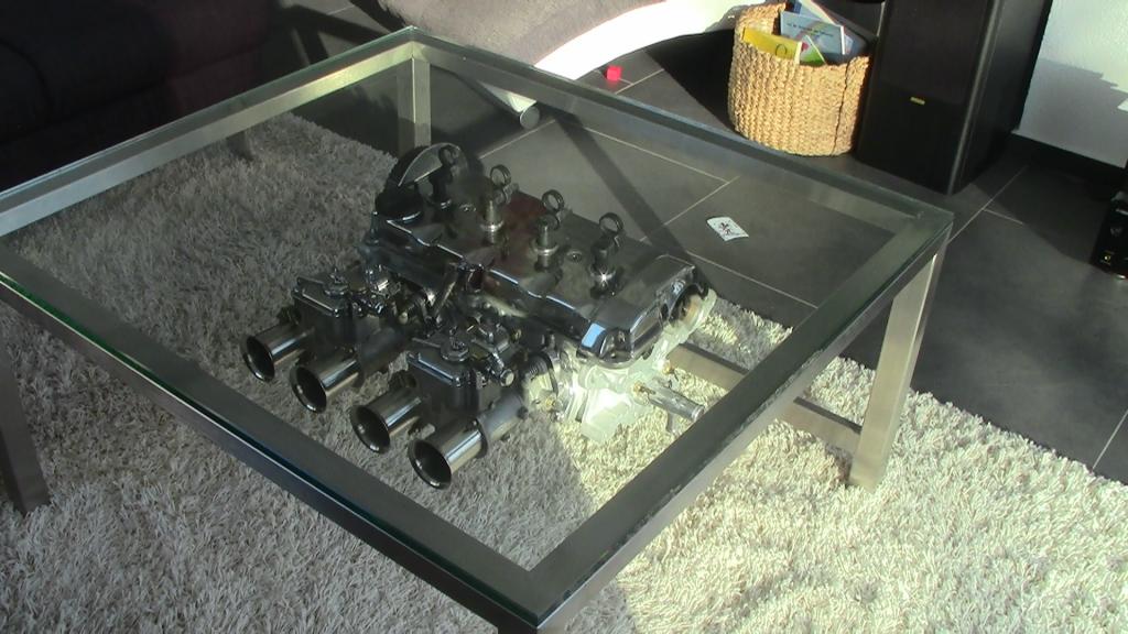 Wollte mal meinen neuen Stubentisch vorstellen.Da ich noch einen alten 16V Kopf da hatte, und nicht recht wustte was ich damit machensollte,dachte ich mir ein Stubentisch wäre das besste für so einen Kopf.Also ein bischen schick gemacht und gut.