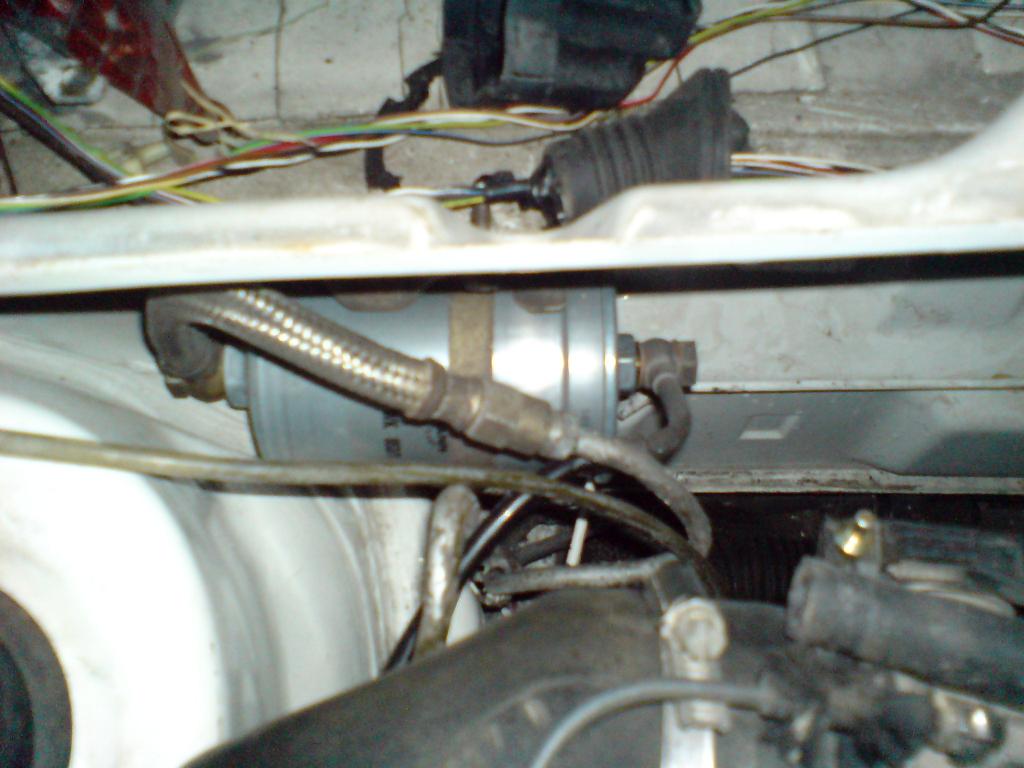 Was seh ich da. Hast du den Spritfilter an die Spritzwand nähe Krümmer montiert?