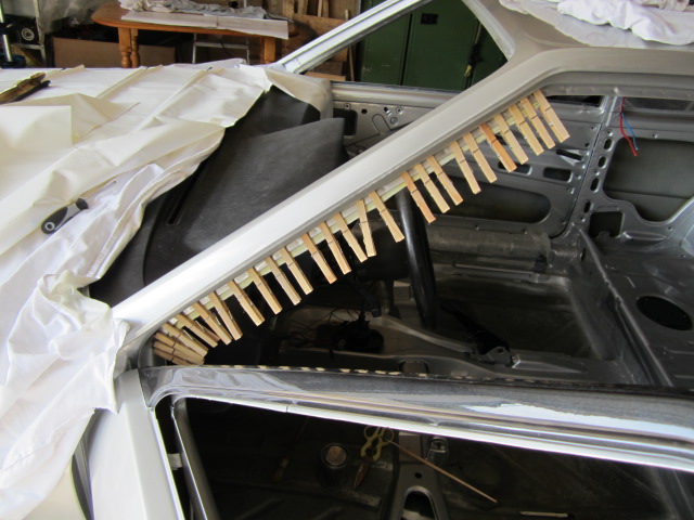 Da meine Frau die A und B- Säulen in weiß statt Original in schwarz haben möchte, hab ich die auch schon mal angefertigt und eingeklebt