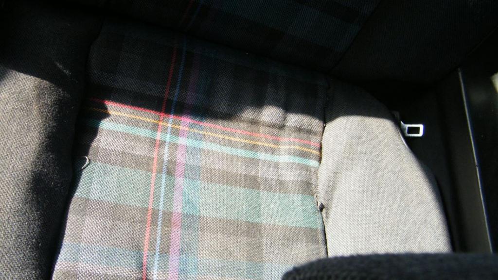 Die Innenausstattung hat´s am Fahrersitz auch erledigt, ebenfalls ist hinten die Naht auf. Glücklicherweise konnte ich schon gebrauchte Sitze erhaschen, welche ich als Reservoir für den Stoff nehme, um die Bezüge passend umzunähen.