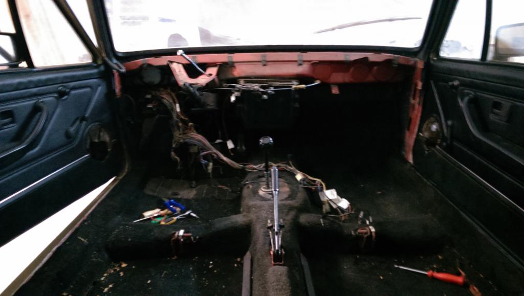 Am Wagen selber ist noch nicht so viel weiter passiert, außer dass das Armaturenbrett raus ist und der gesamte Kabelbaum (an dem sehr viel gepfuscht wurde).