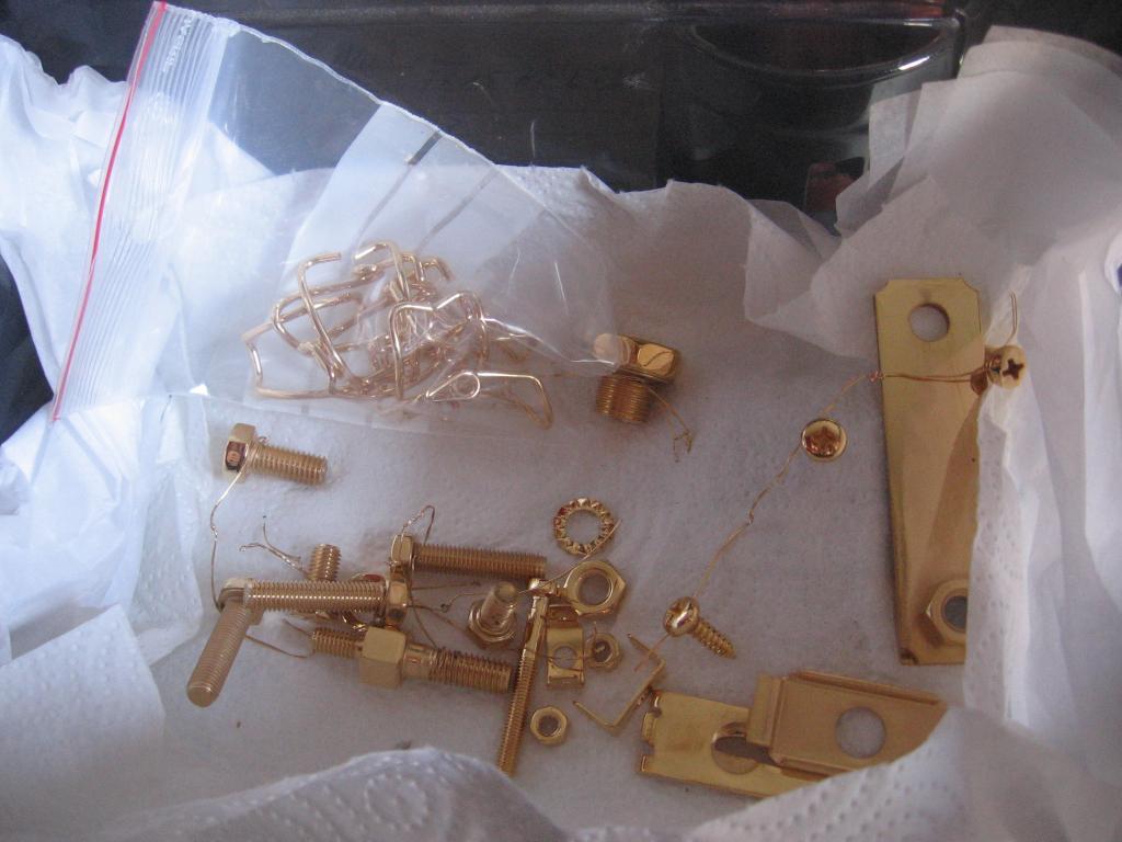 Hier mal wieder ein paar teile Vergoldet Zündspulenhalter ÖL Ablassschraube und Klammern für den Luftfiterkasten. Und noch verchromte Teile. Freund Andreas ( Auto Elektriker Meister und Scirocco enthusiast)