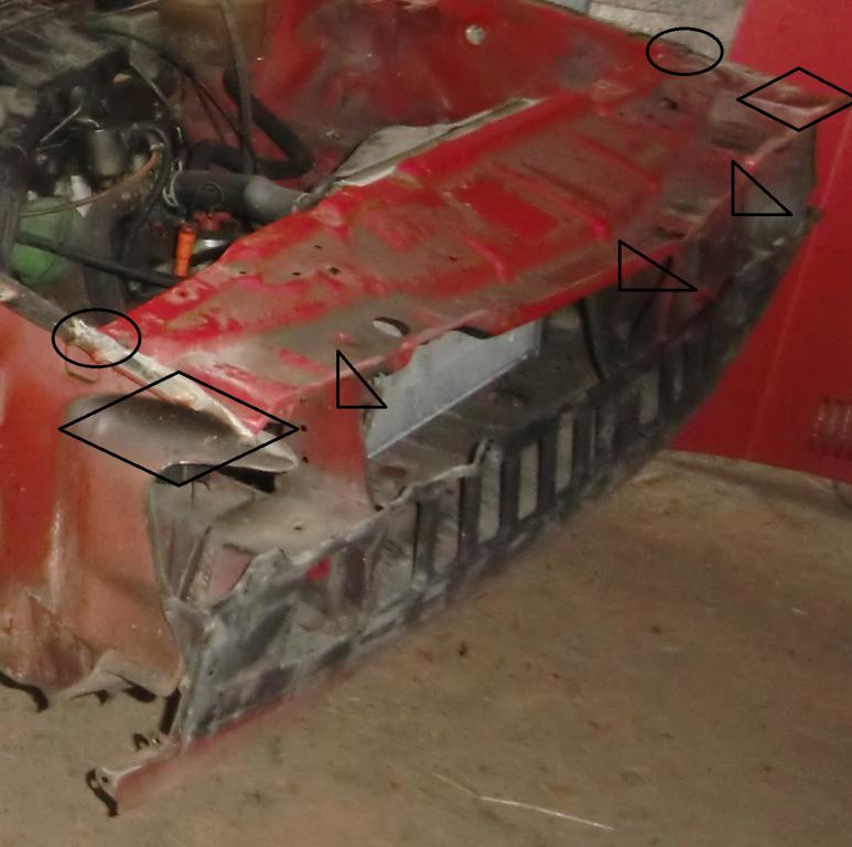 Will gerade ein Schlossblech rausmachen, nach Möglichkeit mit nem Schweißpunktbohrer um möglichst wenig sinnlos zu zerstören. Nun kommt man ja oben (Kreis) auch gut hin, nachdem der Kühler raus ist auch an die mittigen drei Stege (Dreieck). Hat schonmal jemand die außen in der Rundung (Raute) aufgebohrt? Da komm ich mit der Bohrmaschine nicht weit genug drunter, also eigentlich kein Beikommen. Noch dazu sind es 7-10 Schweißpunkte...