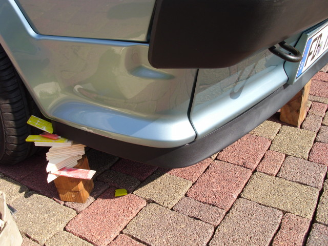 Die Montage war erwartend einfach: etwa 10 minten lang die Unterkante der Verspoilerung putzen, Spoilerlippe vorsichtig anpappen, ein bisschen ausrichten, festdrücken, fertig.