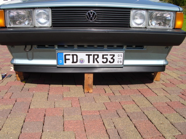 Golf 2 GTI Lippe vom GL Modell. Paßt auch ohne große Arbeiten. Ist aber bei 40mm Federn schon recht grenzwertig. Und macht sich bei hohen Geschwindigkeiten 150Kmh+ negativ bemerkbar war die Spurstabilität angeht.