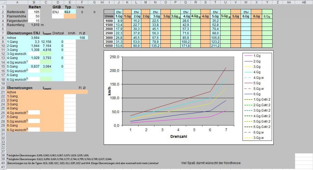 Ja, nach der Tabelle ja. Ich hatte im Netz die oben genannten Zahlen gefunden. Da wäre dann der Achsantrieb nicht mit 3,667 sondern mit 3,158 übersetzt. Dadurch wäre es insgesamt länger.