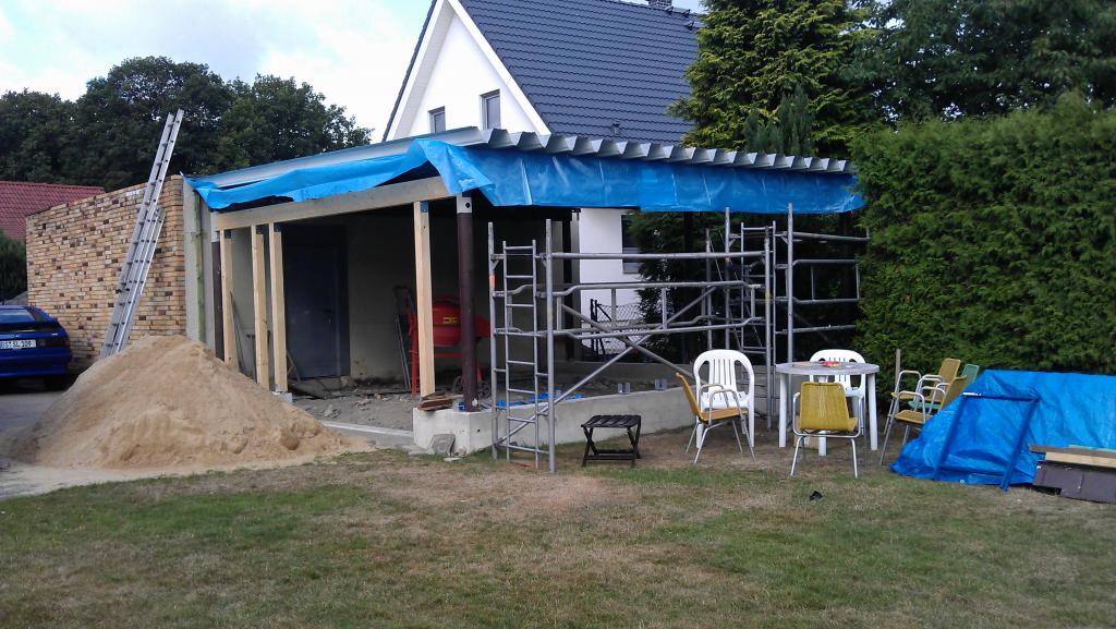 Erst einmal die Ausgangsbasis: Zunächst musste ich mir erstmal eine Werkstatt bauen - Hallen zur Miete findet man hier nicht und ich habe nette Nachbarn/Vermieter. In diesem Rahmen noch einmal herzlichen Dank gesagt für die Möglichkeit und Unterstützung an alle Beteiligten.