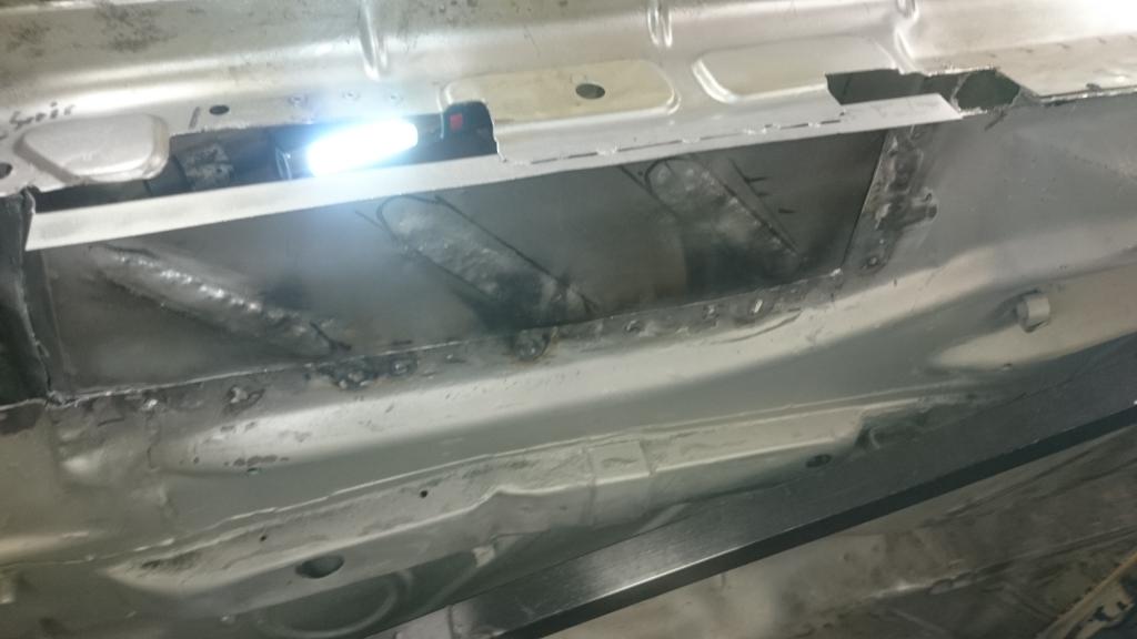 Wie man sieht, habe ich die vordere Wagenheberaufnahme - das ist das Teil mit den beiden Buckeln im Beitrag weiter oben - entfernt. Das bleibt auch ab, da der Schweller innen auch umgebaut wird.