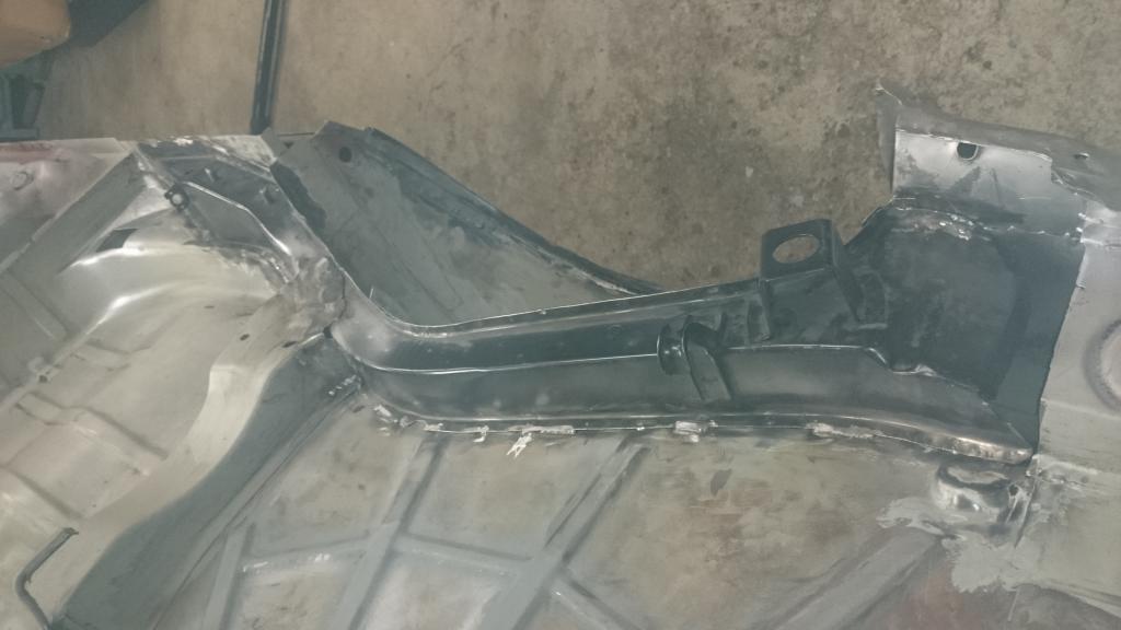 Hier sieht man den Innenaufbau der neuen Endspitze. Ich hatte es bislang nicht gezeigt, glaub ich. Das Innenteil mit dem Wasserdurchlass ist übrigens auch durchgepunktet und dann am inneren Rand nochmal angepunktet. Im Grunde nur, damit das Blech anliegt. Drumherum zuschweißen wollte ich es nicht, damit beim Fluten mit Hohlraumschutz alles gut durchtränkt werden kann.