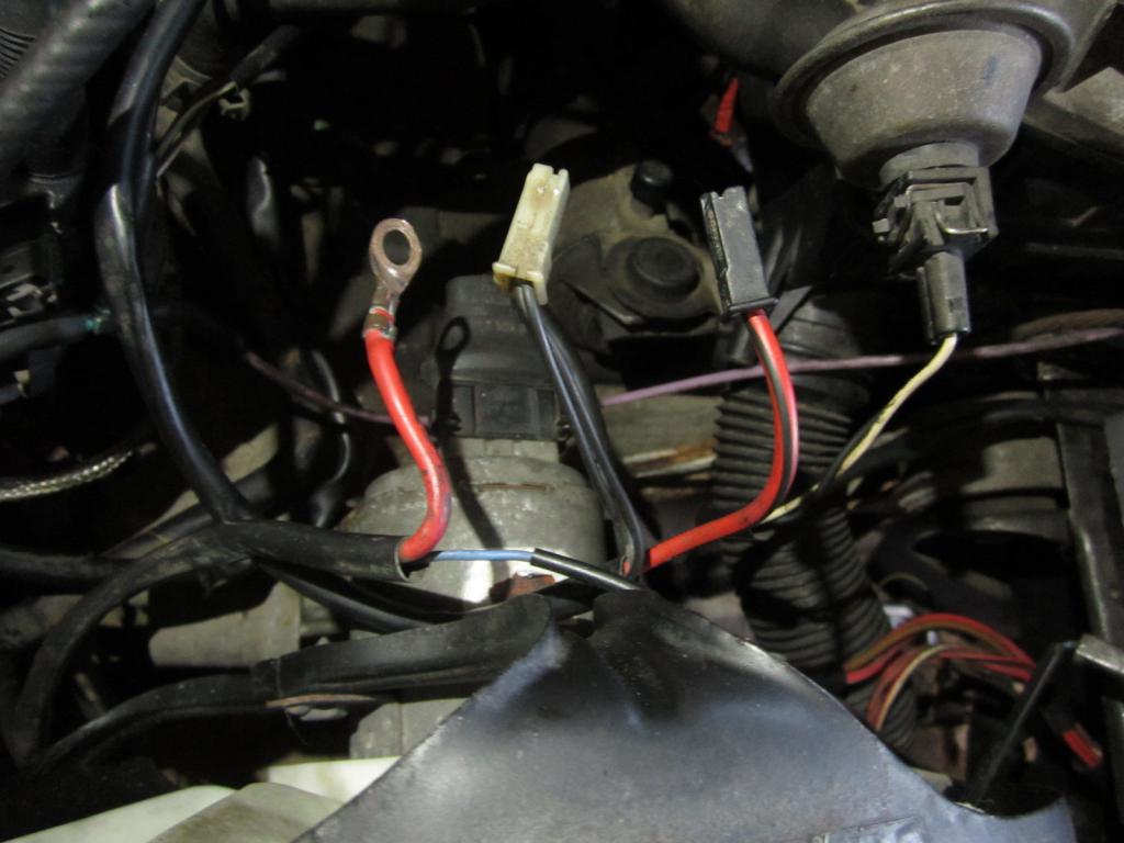 Jedenfalls.. eingebaut.. und bei den Anschlüssen habe ich einfach mal geraten (ja da war ich jetzt zu faul wieder in den Plänen zu suchen aber normalerweise kann man da ja nichts verkehrt machen) und.. rot/schwarz mit Stecker denke ich mal ist die Magnetkupplung. Rot mit Öse ist bestimmt der Startstrom für den Anlasser und zwei schwarze Kabel an einem Stecker Masse.