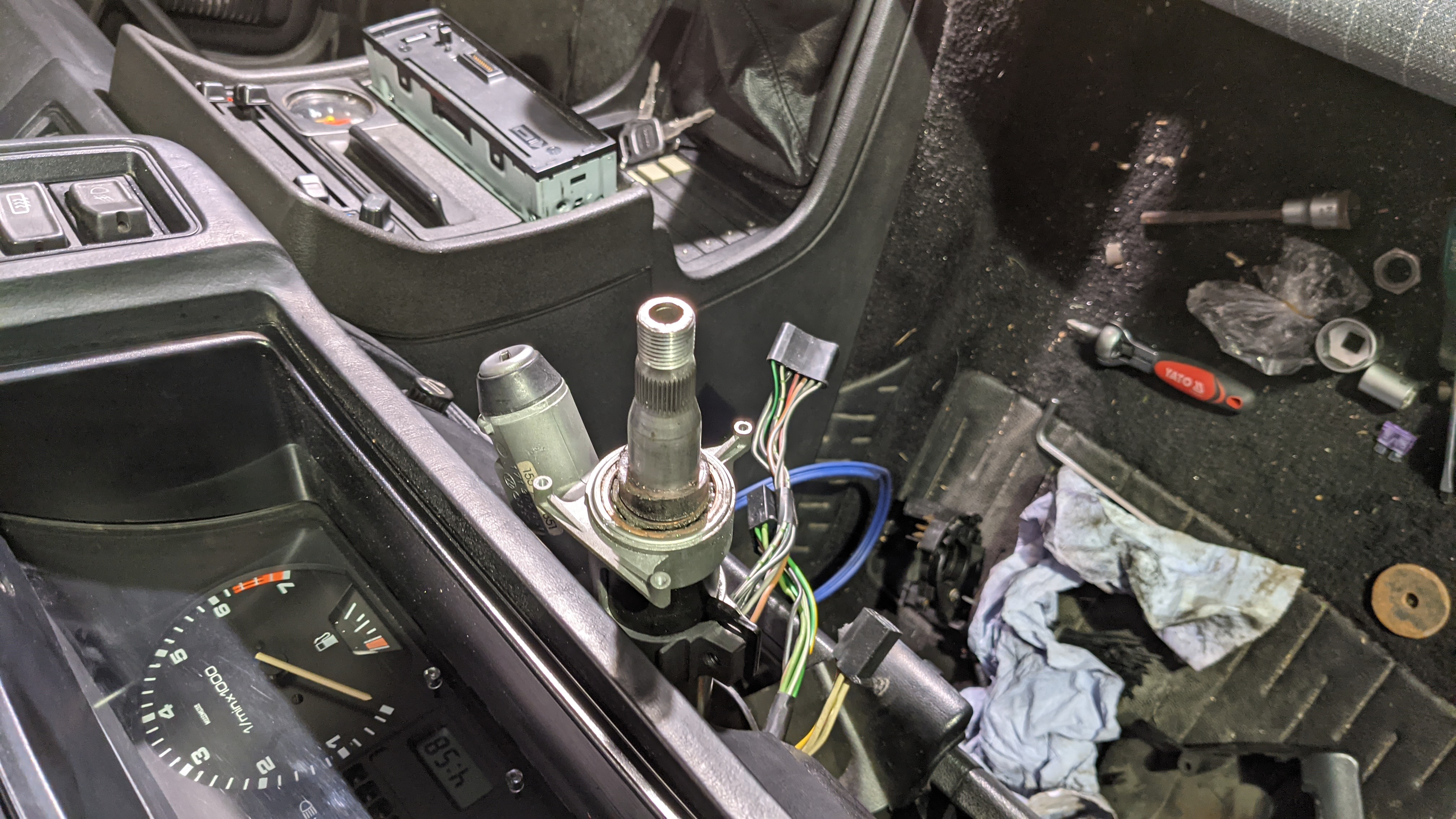 wie in meiner Signatur zu sehen besitze ich einen 87er JH Scirocco Scala. Beim Kauf war mir das verbaute Lenkrad schon ein Dorn im Auge. Habe mir dann ein 4-Knopf-Lenkrad mit Scirocco-Emblem besorgt und aufgearbeitet. Gestern sollte es dann eingebaut werden was zu einer wahren Mammutaufgabe werden sollte. Aber Step by Step: