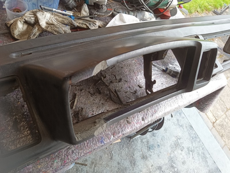 Ich hatte das Armaturenbrett jetzt total zerlegt, soweit möglich. Es ist ja innen 2 teilig aus Pappe bzw Papplaminat. Inzwischen war es teils recht labberig. Hier hilft Epoxidharz und Glasseide. Zunächst nur massiv einstreichen, dann überlaminieren. Das Zeug saugt wie verrückt.