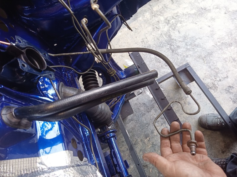 Das Kupferrohr mit dem Übergang hinterm BKV und der Führung zum Getriebenehmer rüber wird nicht die Endlösung. Da kommt noch Stahlflex dran. Aber so habe ich erstmal die Maße. Eigentlich alles gar net so wild, oder?