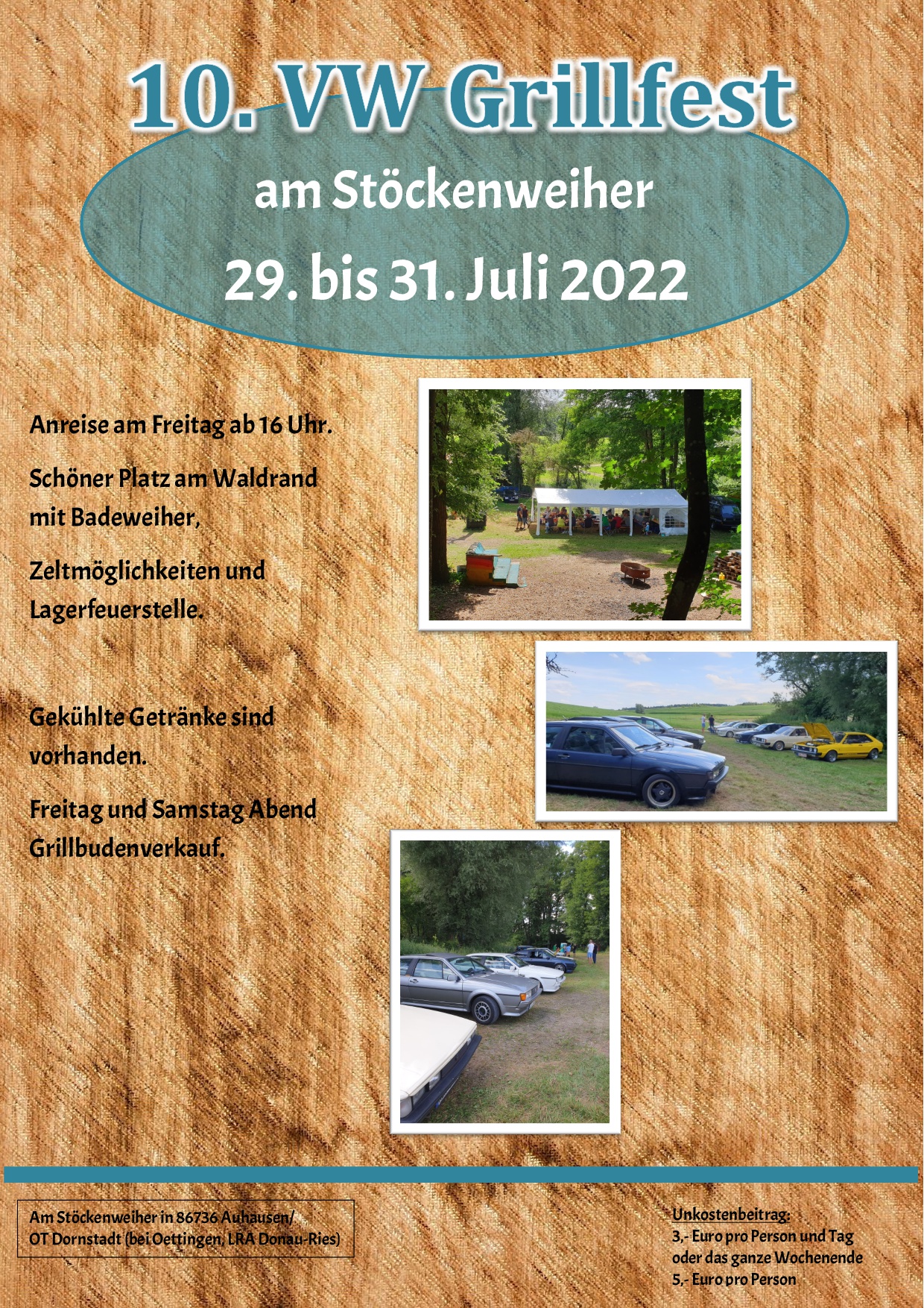 Wir veranstalten dieses Jahr unser 10. VW Grillfest am Stöckenweiher in 86736 Dornstadt.