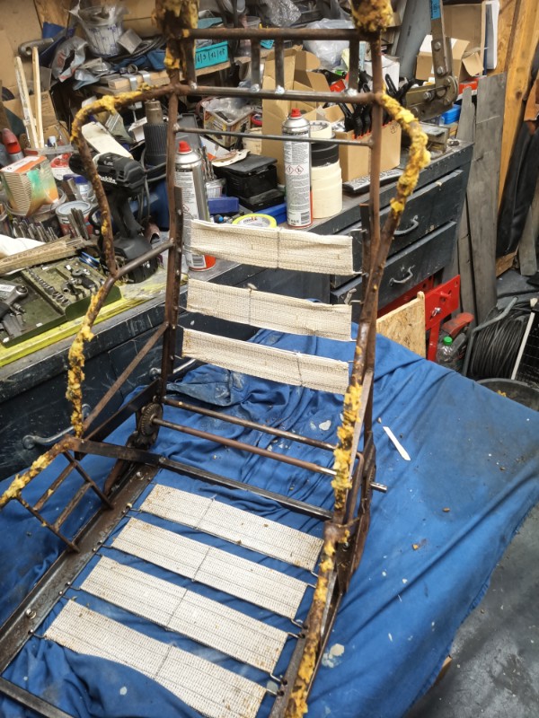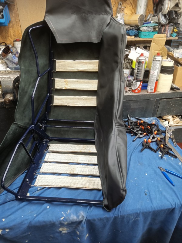Edit: heute ging es etwas weiter. Das blaue Material ist Schaumstoff und Teil der neuen Polsterung.
