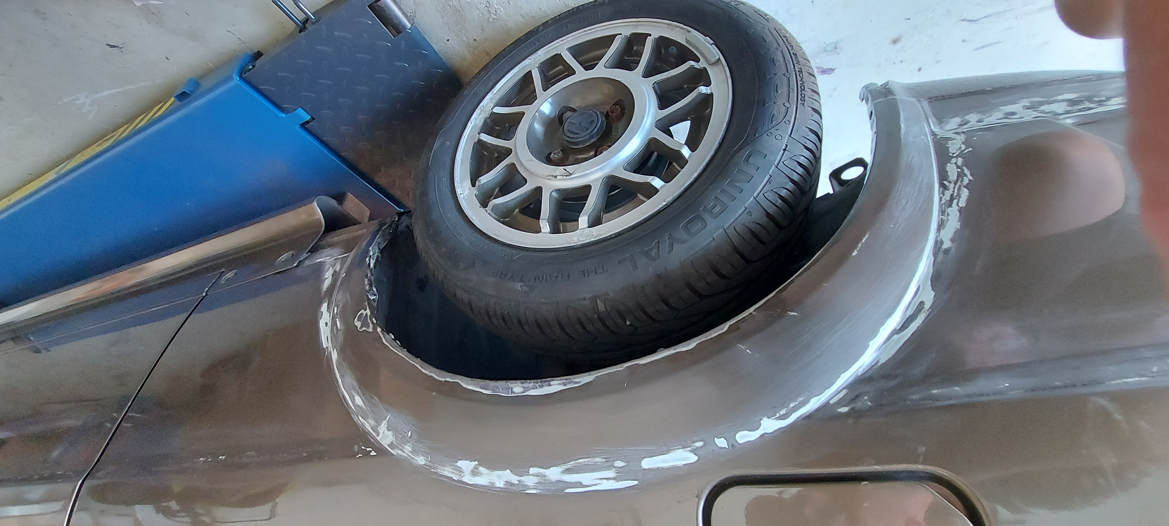 Die Kamei Verbreiterungen blieben übrigens auf dem Wagen beim lackieren drauf.