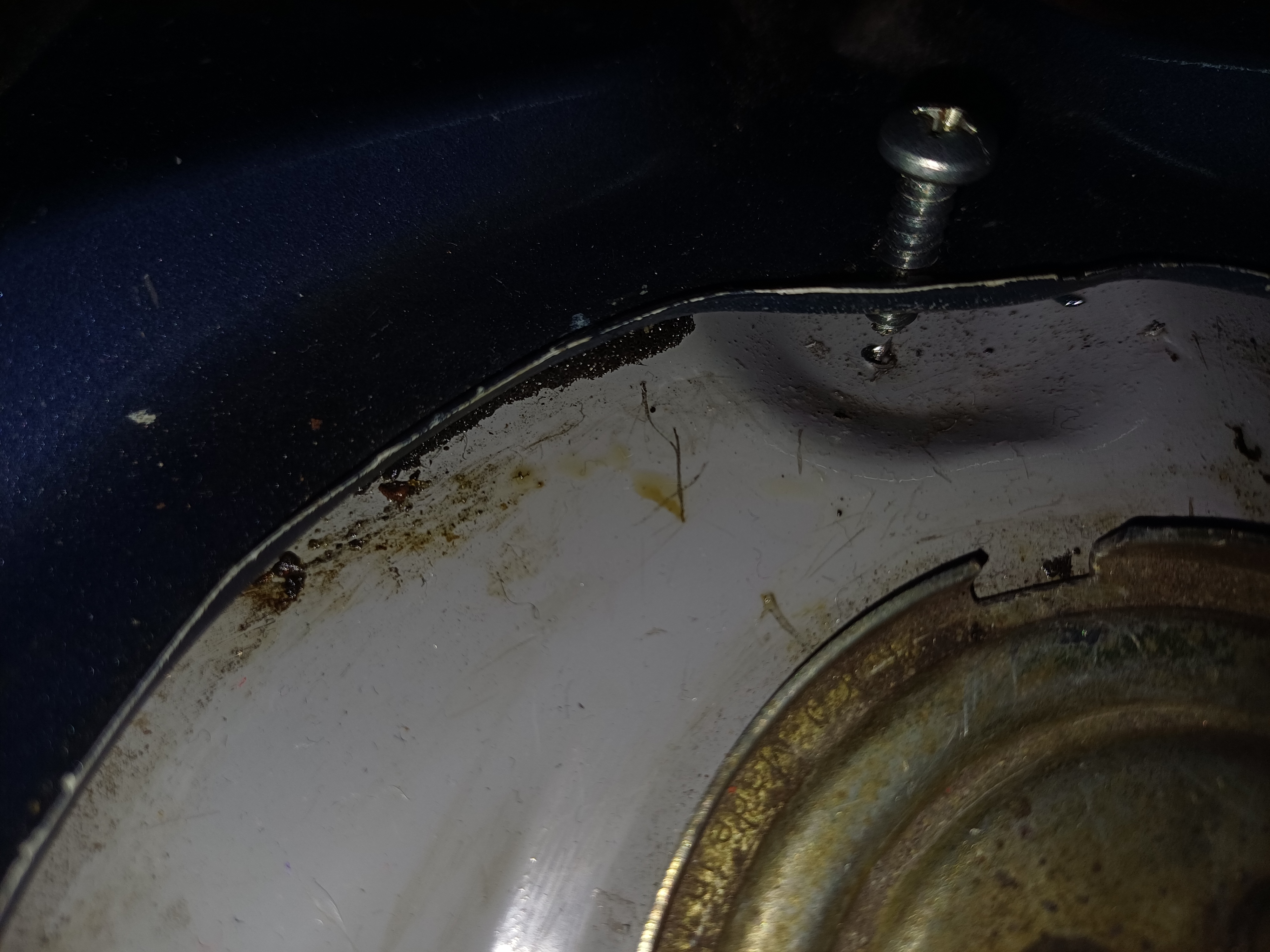 , eine etwas zu lange Schraube, mit der ich die Abdeckung des Tankgebers montiert habe. Das Loch wurde durch den dortigen Moosgummi verdeckt.