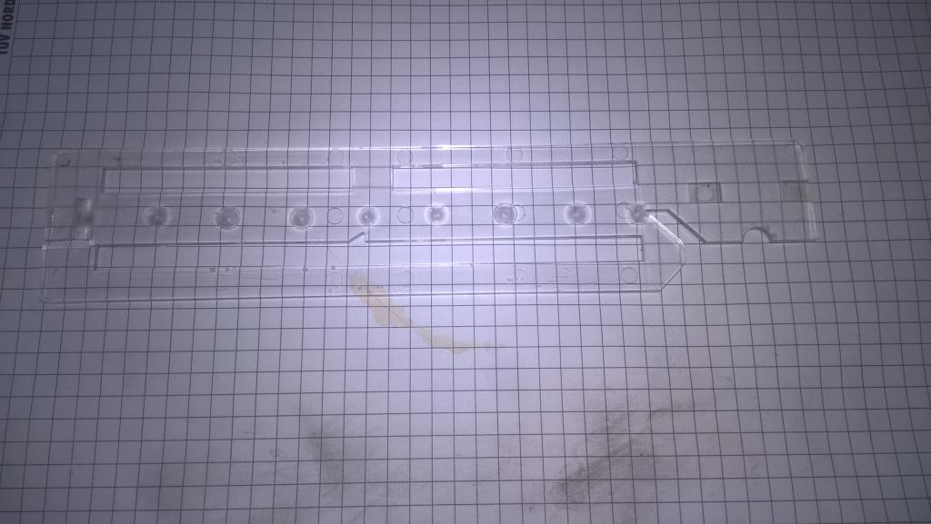 Wenn man auf das Öffnen und zerlegen der Blende verzichten möchte, könnte ich mir auch vorstellen, dass Teil 4 von hinten zu durchbohren, den Lichtleiter anzusenken und den LED -Stripe von außen zu befestigen.