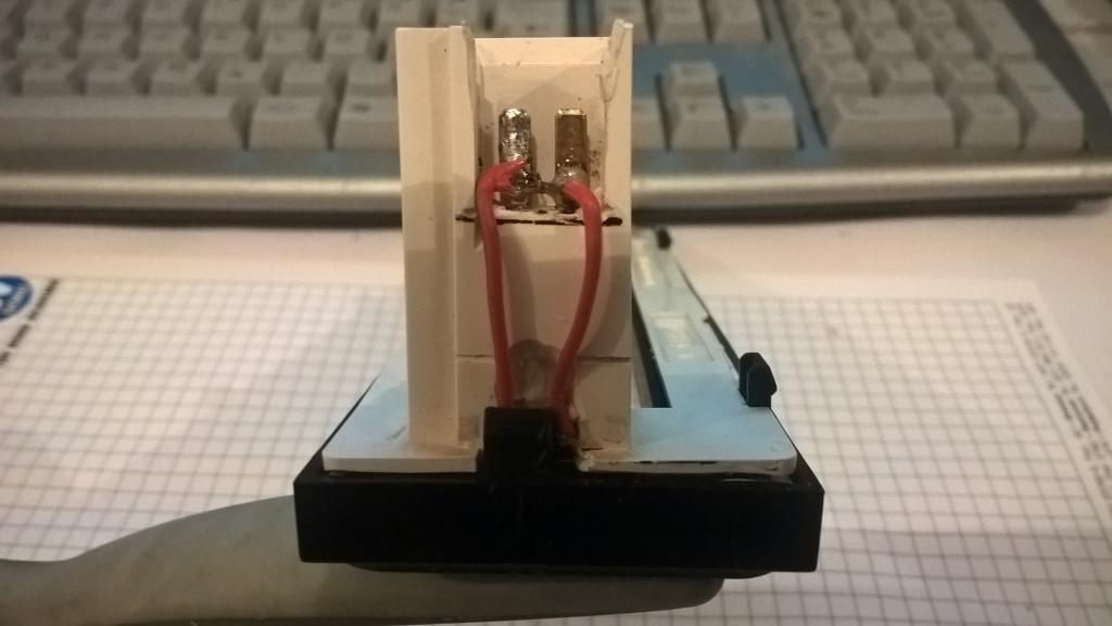 Dafür ist der Lichtleiter im Bereich des originalen Glühlämpchens auch eingekerbt und im Bereich des Drehschalters für das Gebläse aufgerauht , um die