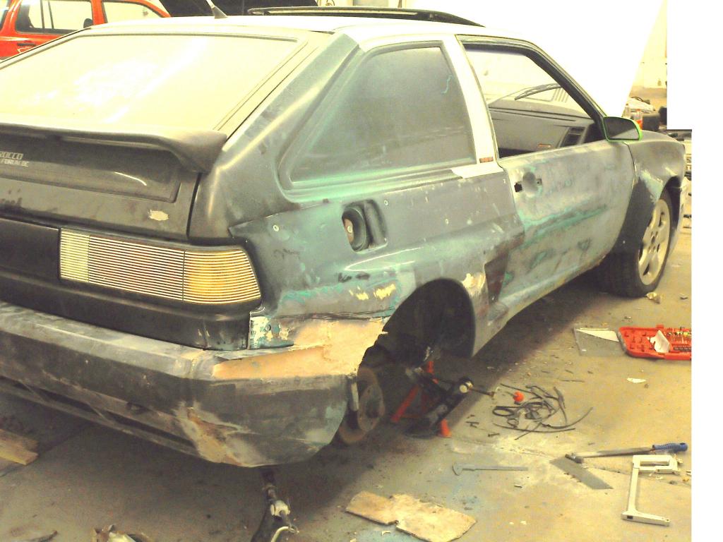 Den blauen habe ich jetzt zerlegt in der Werkstatt stehen. Ist sehr viel dran verbastelt an dem Wagen, viele Aufkleber viel "Kirmestuning".....dort habe ich gerade die Heckteile neu anlammniert und den Heckspoiler. Rost hat er keinen. Ich hoffe das ich nächste Woche damit fertig werde und er dann lackiert werden kann.....