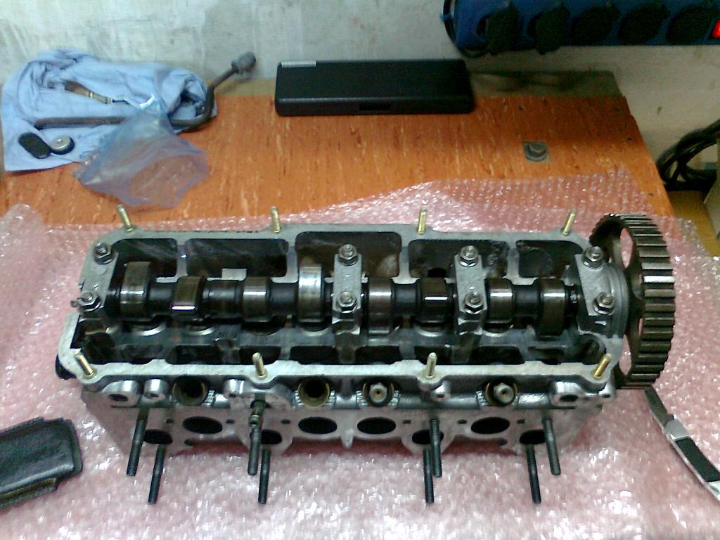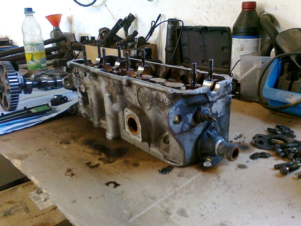 zahnriemen runter usw. also alles soweit das ich den kopf runter nehmen kann... ich warte jetzt nurnoch bis mein kumpel zeit hat mir die ventile zu schleifen und den kopf zu planen.