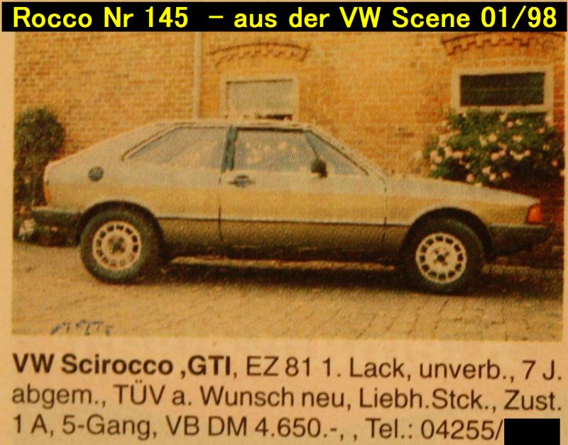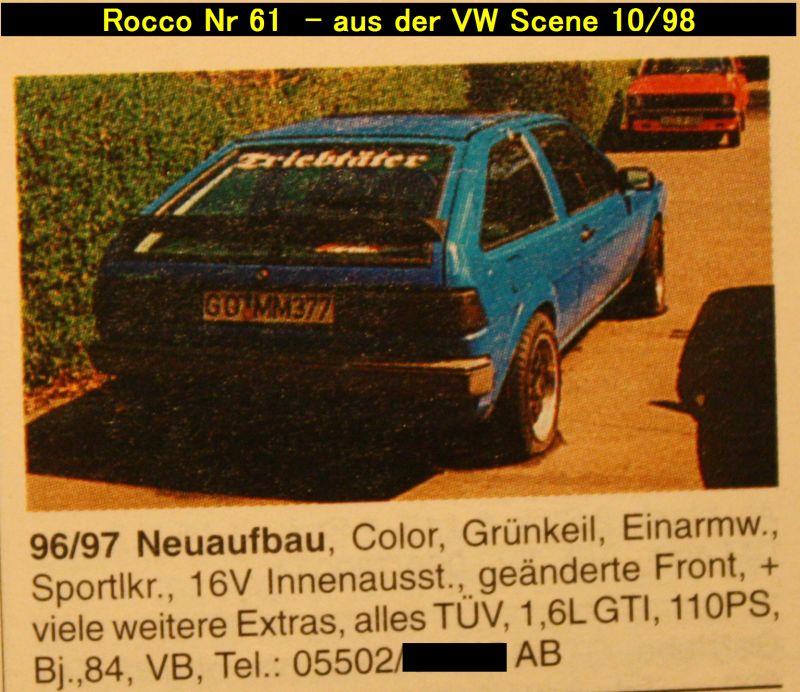 Und eben auch in der VW Scene 01/98 war dieser grüne Einser von Markus Tiede - somit die Nummer 147! Wer weiß, was aus diesem Wägelchen geworden ist?