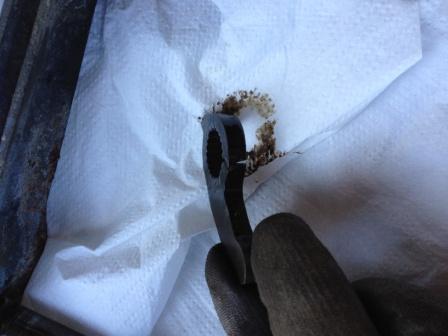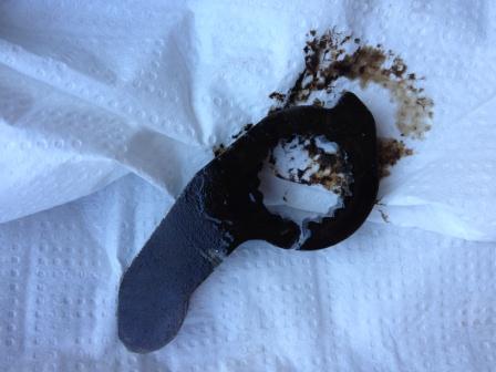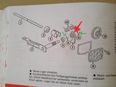 Das Teil mit dem roten Pfeil ist der Betätigungshebel. Das Seil konnte es nicht sein, weil Serdar geschrieben hat, das der Kupplungshebel am Getriebe sich widerstandslos hochziehen ließ. Das "Zerbröselte" ist der Simmerring, den brauchst Du auch neu, sonst ist das Getriebe bald ölleer.