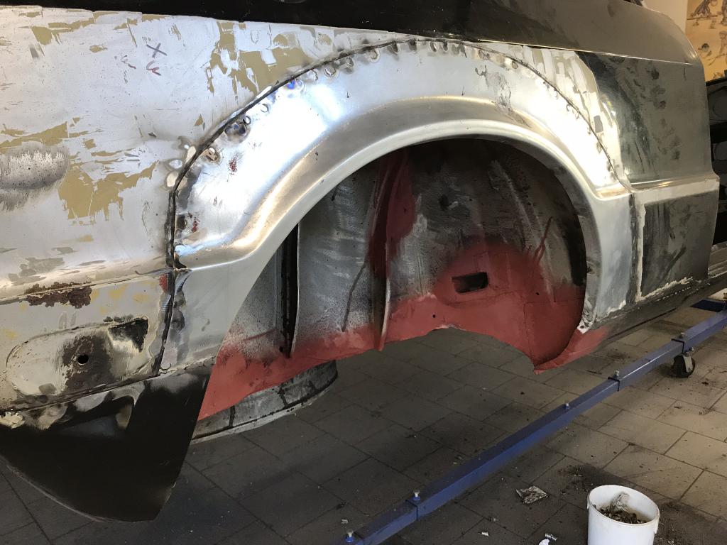 Radhaus hinten rechts ist fertig. Ich werde die Übergänge verzinnen und den Rest muss dann der Lackierer richten.