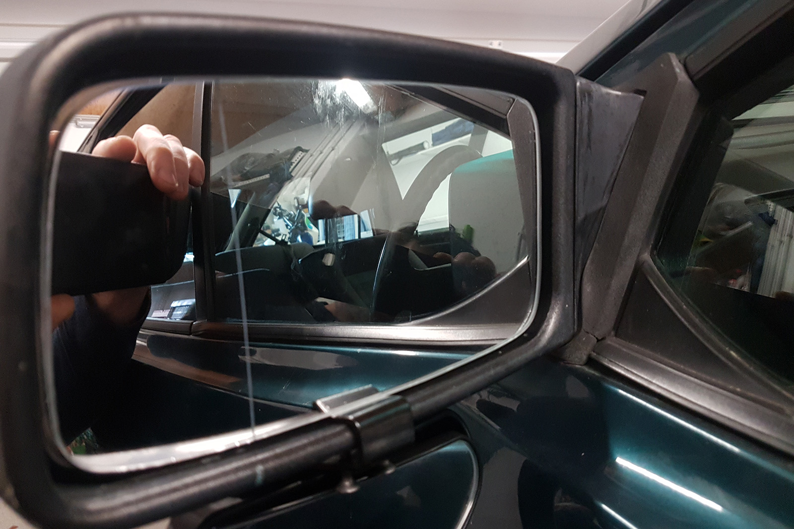 Also ich würde die Spiegel abbauen und auf eine Werkbank legen. Die neuen Gläser anhalten und Holzstücken suchen, die das Ganze in Form halten, sprich Abstandhalter zum Rand hin.