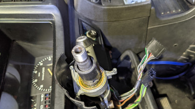 Was mir noch aufgefallen war: Man hat auch die Möglichkeit die Distanz zwischen Hupkontakt und Lenkrad leicht zu verändern denn das Zündschloss welches den Endanschlag für Blinker- und Wischerhebel festlegt kann man in der Position leicht variieren. Leider hab ich in der Hektik und der danach folgenden Freude Mal wieder vergessen Fotos zu machen