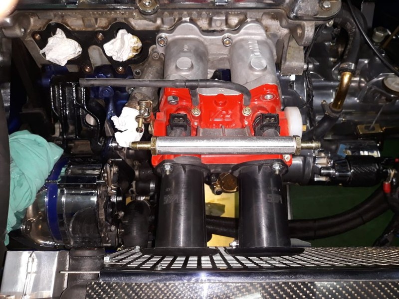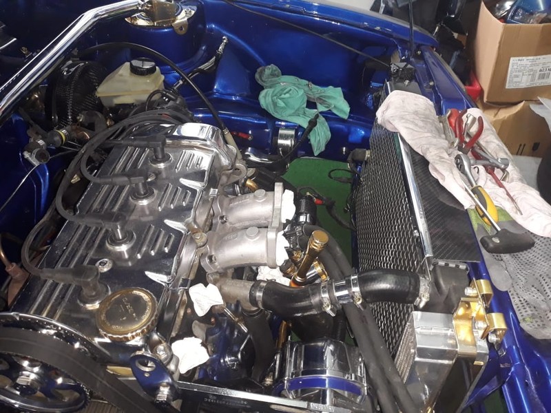 Gude - dann mal wieder etwas zum Lesen und Gucken.... Es ging dann erstmal daran, die Einspritzung vom 16V, Spritleitungen, und andere Sachen ordentlich zu demontieren. Nun hab ich eine Brücke samt Drossel montiert, da beim Einbauversuch der zweiten Brücke der Wasserstutzen im Weg steht. Die Länge des Ganzen beträgt ca. 28-29cm. Wasser- und Ölkühler sind auf den Bildern noch eingebaut, wird aber erneuert bzw. versetzt. Jetzt kann ich Wasserrohre und Schläuche neu konzipieren und anbauen. In Dorfmark beim Treffen waren jeweils 3 Roccos mit Drossel bzw. Weber 16V. Da hab ich die ein oder andere Anregung förmlich aufgesogen und mitgenommen. War echt interessant, dieser Austausch. Gleichfalls hier Danke an den Axel aus GF. Ich glaub, er weiß schon ,wer gemeint ist