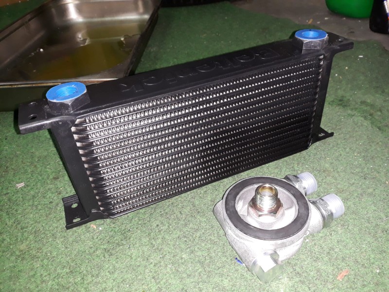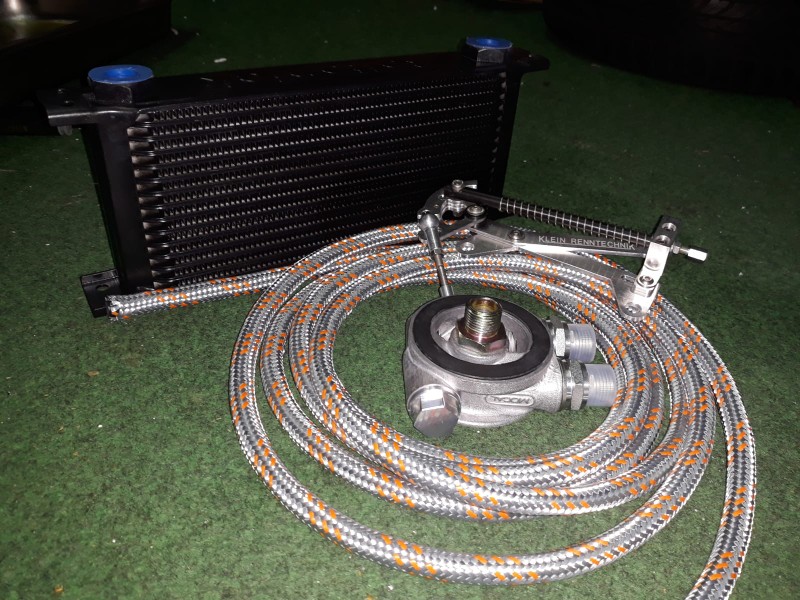 Gude - wie schon geschrieben, hab ich entschieden einen neuen Ölkühler,Wasserkühler und neue Anschlußleitungen für Sprit und Öl zu verbauen. Dabei sollen dann später die Ansaugtrichter frei atmen können. Heißt, dass keine warme Luft in den Ansaug strömen soll. Ich weiß, das ist bei Vergasern vorteilhaft, wenn alle Zylinder gleich "befeuert" werden und bei Drosselklappen ist das nicht ganz so wichtig. Aber ich hab später noch vor, eine Airbox vor die Trichter zu setzen. Also hab ich mich umgehört und einen Kühlerbauer ausfindig gemacht. Nach 8 Wochen war das gute Stück, nach meinen Vorgaben gefertigt, da. Neue Bilder gibt´s natürlich auch.